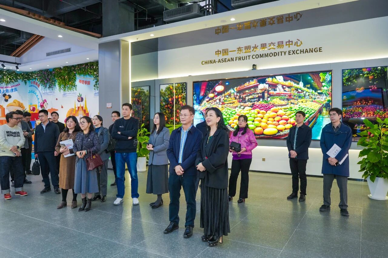 代表處一行還參觀了水果交易中心展廳,深入了解中國與東盟水果貿(mào)易的發(fā)展現(xiàn)狀,對水果交易中心通過多元化的形式既充分呈現(xiàn)了廣西作為中國水果第一大省區(qū)獨(dú)特優(yōu)勢,又生動展現(xiàn)了中國與東盟經(jīng)貿(mào)合作(尤其是水果產(chǎn)業(yè))廣闊前景的做法表示了認(rèn)可。他們希望水果交易中心能早日投入運(yùn)營,為消費(fèi)者提供更加新鮮、實(shí)惠的水果選擇。
